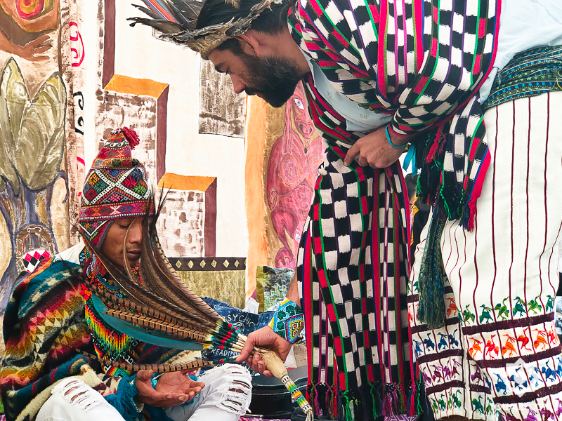 Pedro de Las Rosas, Medicine Man from Venezuela, and Shane from the Huni Kuni People of Brazil during a ceremony.