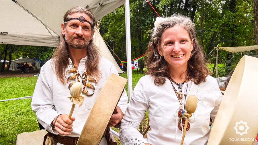 Frédéric and Violaine Roure, guardians of the sacred fire at festivals. He is a Celtic medicine man connected to the spirits of nature; she is a doula. Together, they founded TerrAlliance in Switzerland, a space offering treatments, workshops and ceremonies to reconnect with the sacred and ancestral Celtic wisdom.